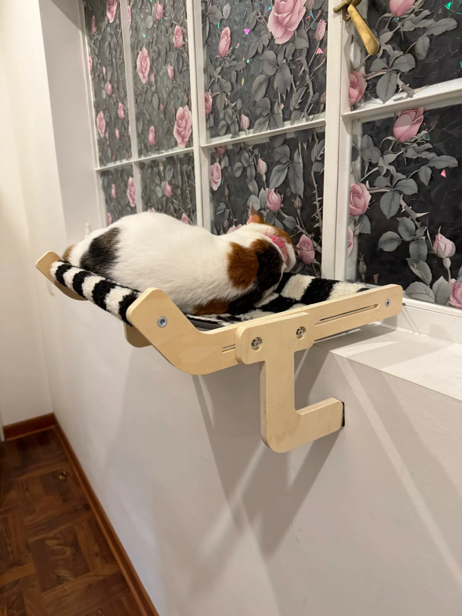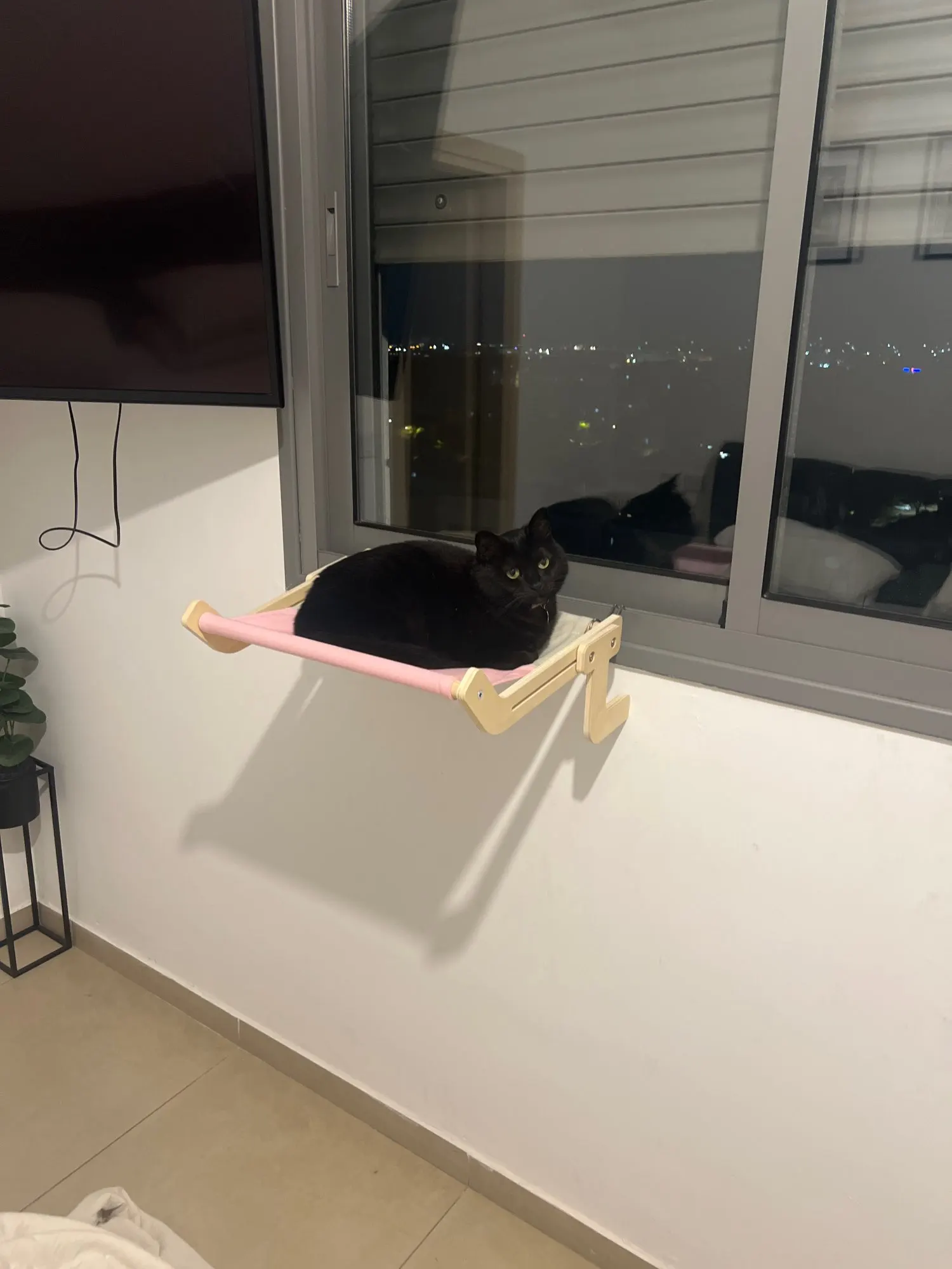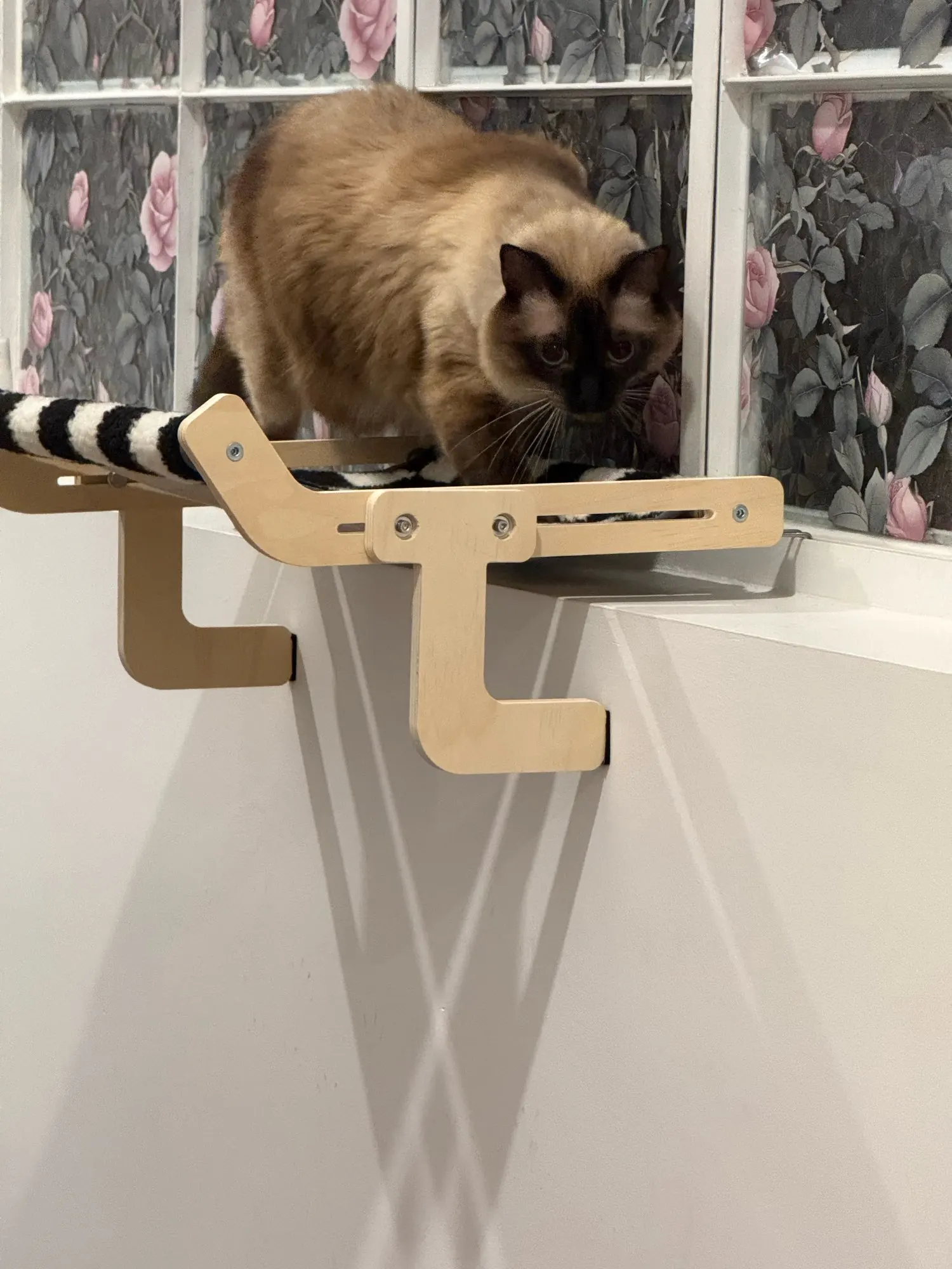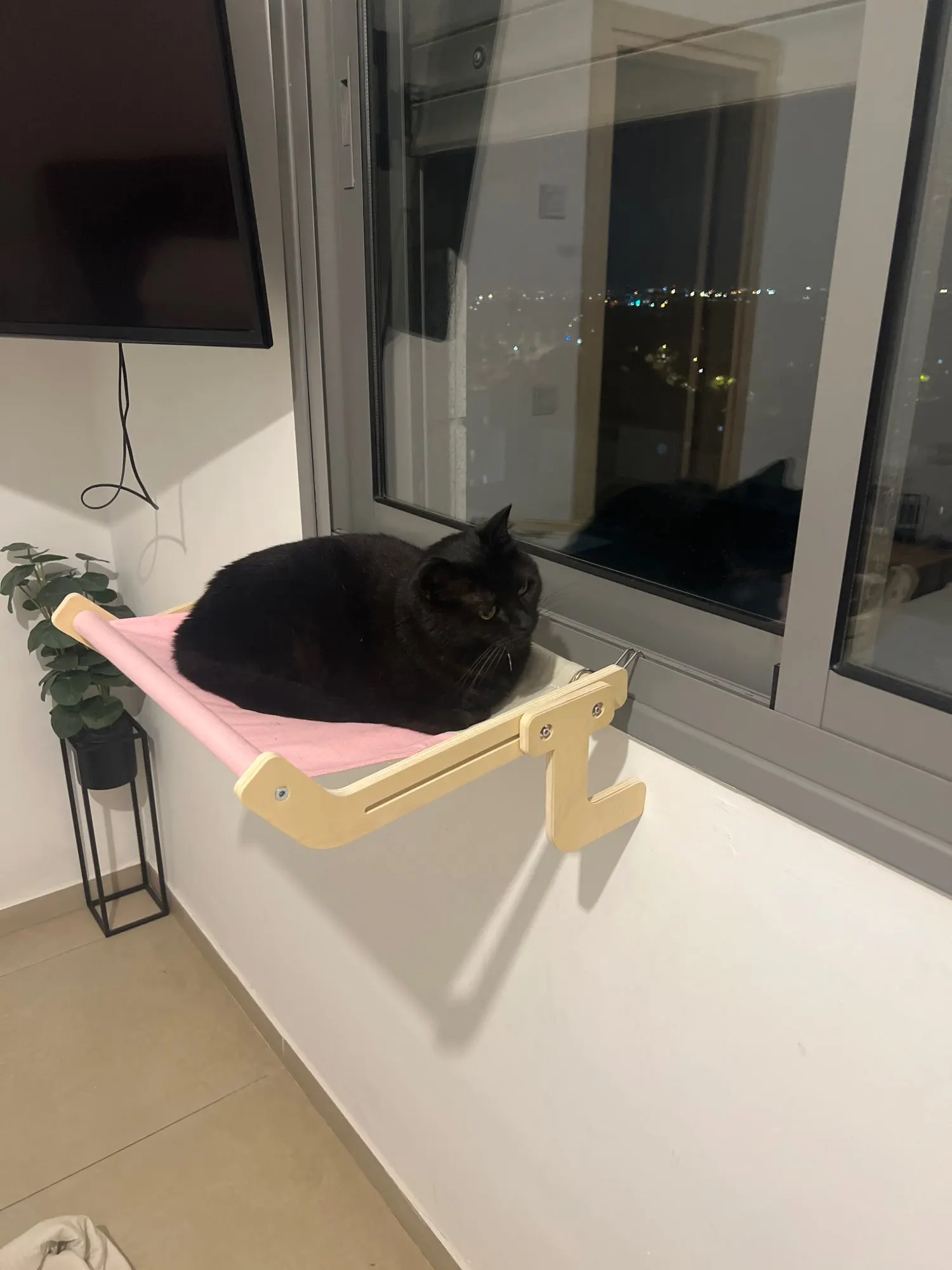 Curved hammock-style bed cradles your cat for maximum relaxationβideal for napping, sunbathing, or birdwatching. -